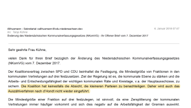 „Frau Pieper, Herr Zinke, Herr von Danwitz! Geben Sie sich einen Ruck und unterstützen Sie eine Normenkontrollklage zur Änderung des niedersächsischen Kommunalverfassungsgesetzes in Bückeburg“, fordert die FDP-Kreisvorsitzende Tanja Kühne die Landtagsabgeordneten des Heidekreises, Gudrun Pieper (CDU), Sebastian Zinke (SPD) und Karl-Ludwig von Danwitz (CDU) auf.